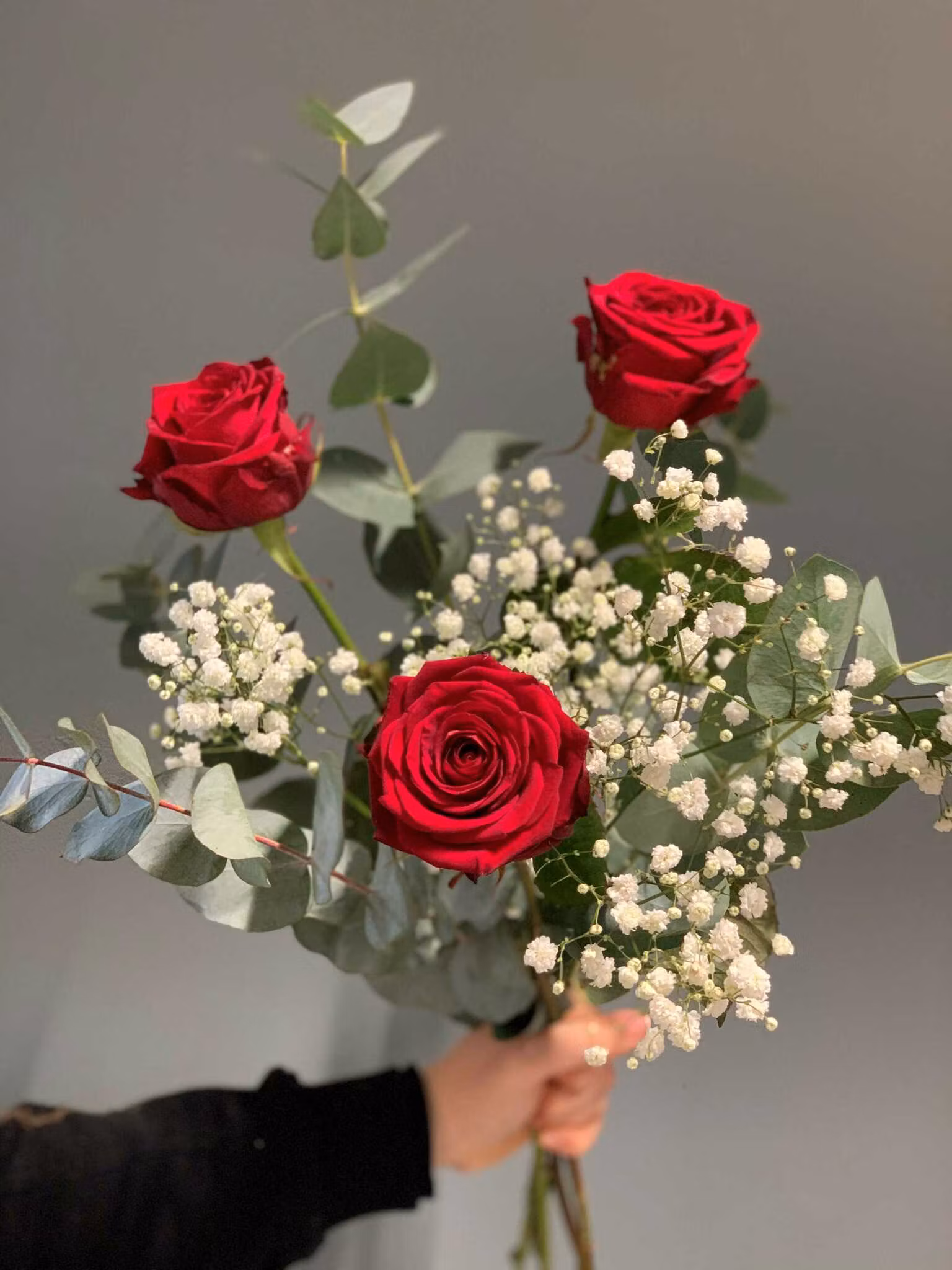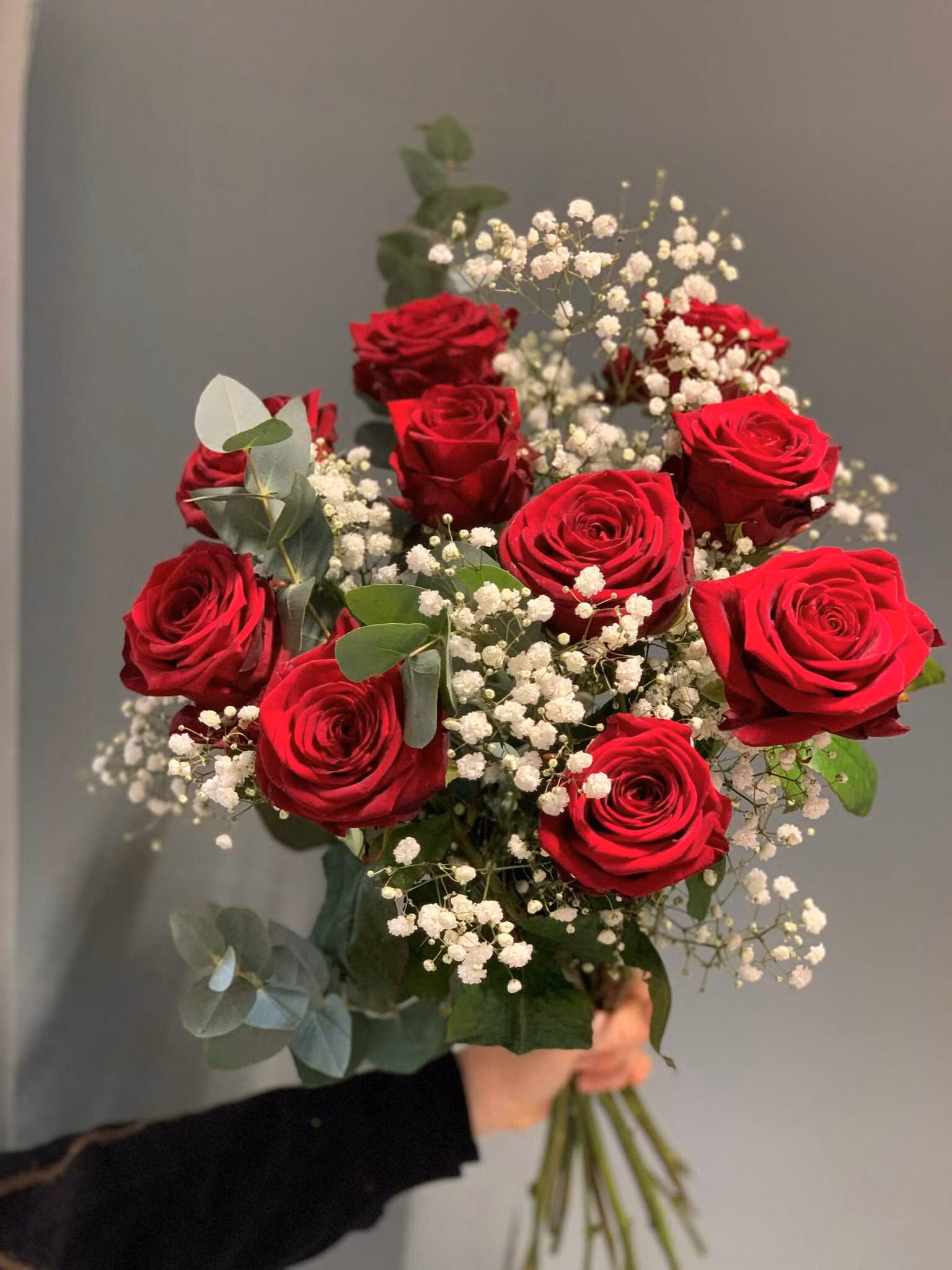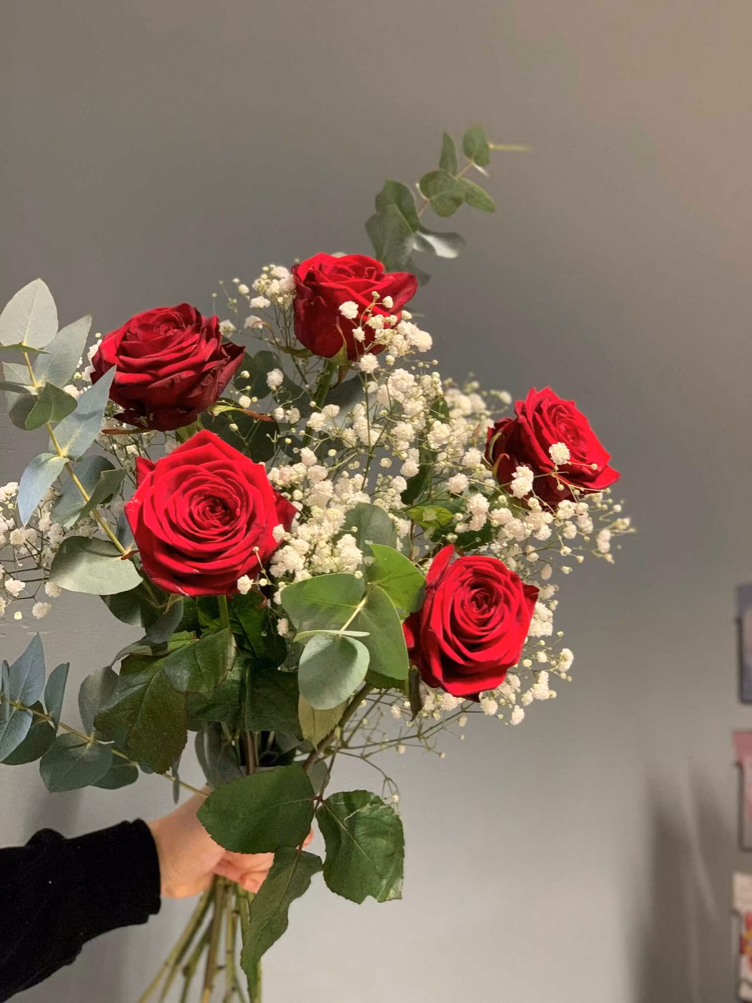 Our exclusive classic rose bouquet is the perfect way to express your feelings. With big red roses and bridal veil in a classic combination, it is both a romantic and elegant option to show your love. This bouquet is always a safe bet, whether you want to surprise someone or just give a little appreciation. You can never go wrong with this bouquet! To give someone you love something extra special, choose our classic rose bouquet!