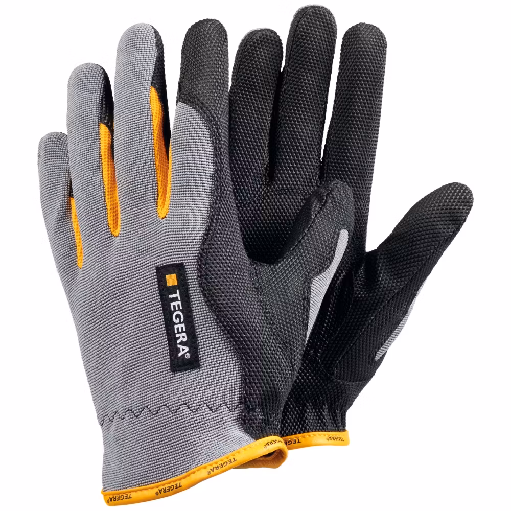 Monteringshandske i tunn och slitstark Microthan+®. Ovanhand i polyester. Kromfri, förstärkt pekfinger, förstärkta sömmar, ventilerad ovanhand, tvättbar i 40°C maskintvätt, förböjda fingrar, specialdesignad tumme. Högsta kvalité. Tegera Pro. Kat. II EN388 2011.