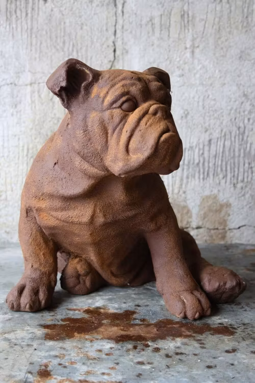 Beställ din rostfärgade engelsk bulldogg staty idag och upplev bulldoggens karaktär och personlighet.