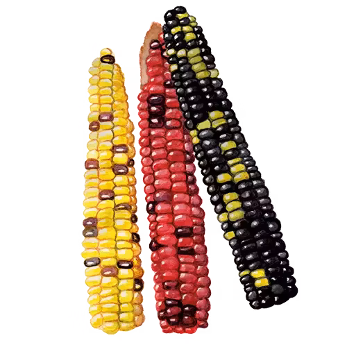 Sagolikt vacker och mångsidig mjölmajs som är utmärkt till gröt och bröd, men som även kan grillas och kokas. Painted Mountain sägs kunna uppvisa alla de färgvariationer majs kan ha och ska också ha den största genetiska variationen. Är mycket tålig mot kyla och vind och är en av de allra tidigaste sorterna. Selektion av Dave Christensen i Montana. Ca 150 cm hög.