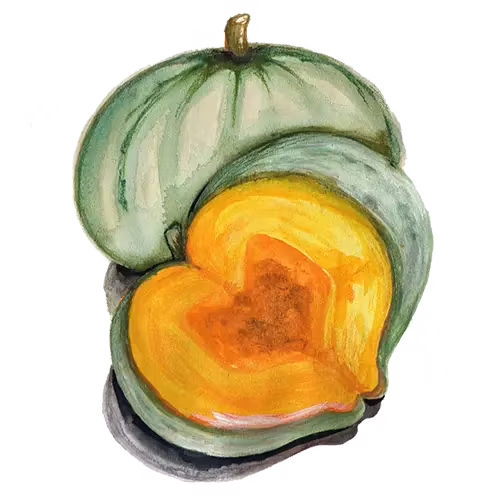 En stor och vacker vintersquash med mycket goda lagringsegenskaper. Gror bra i kall jord och frukterna ger ett krispigt och sött fruktkött som smakar supergott såväl rått som tillagat. Frökärnan är liten och mängden mat är stor! Bonus – fröna har tunna skal så du kan äta dem som vanliga pumpakärnor. Jättegoda de också! Selektion från en av våra stora idoler, Carol Deppe i Oregon.
