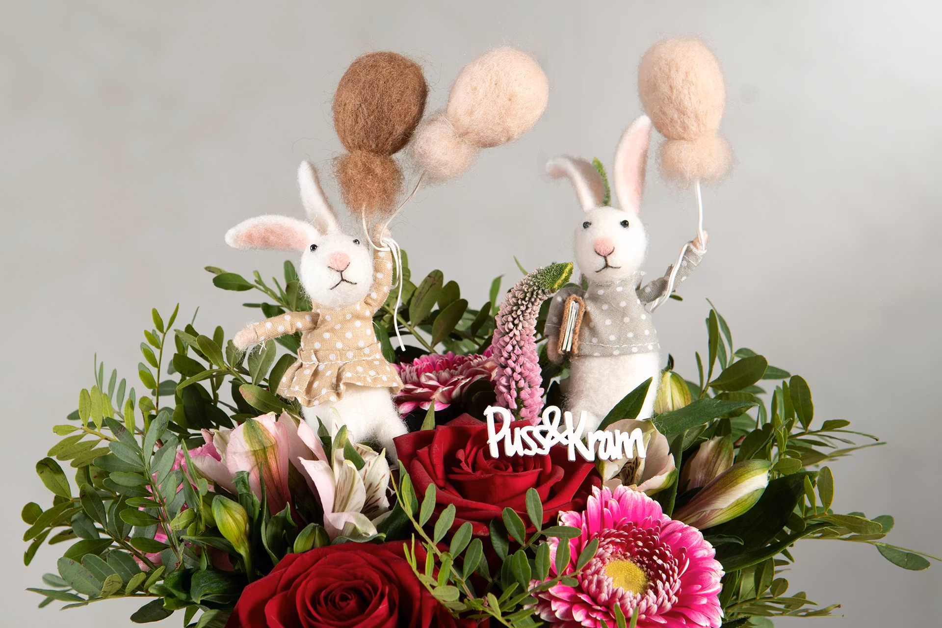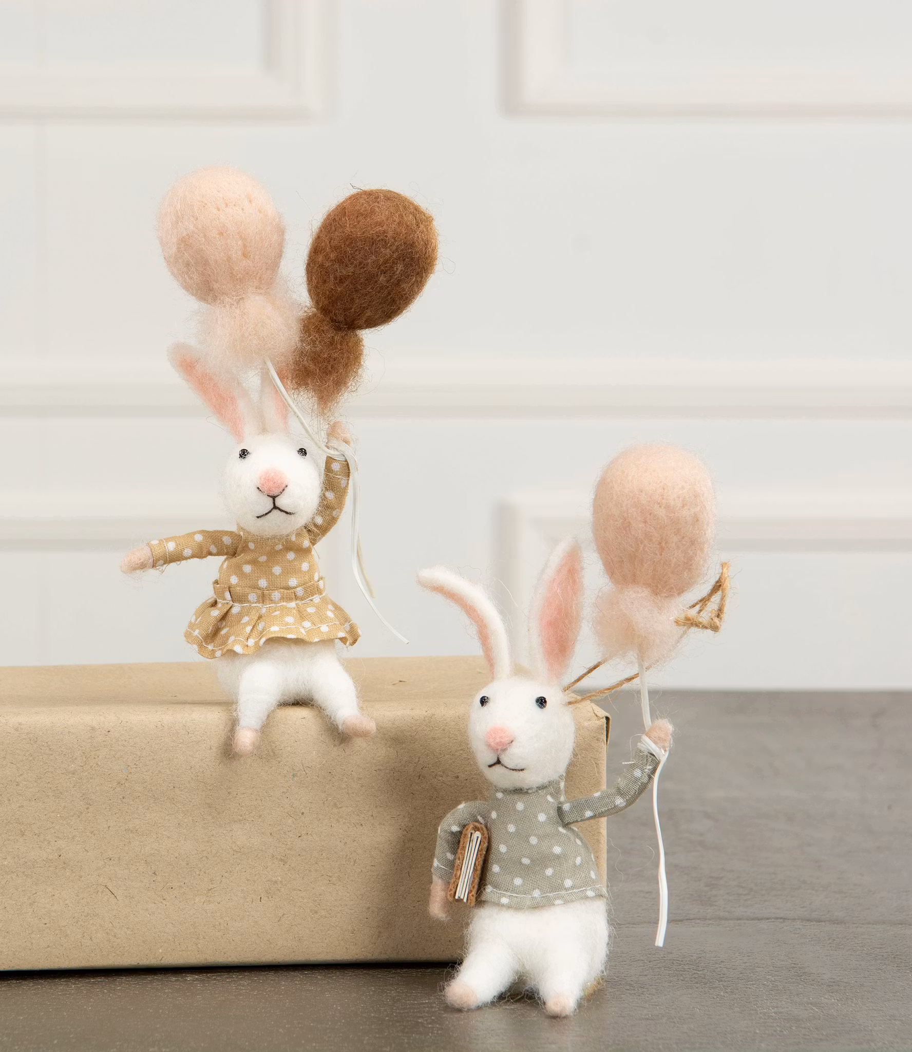 De kommer i par och är ungefär 16 cm stora, vilket gör dem till det perfekta tillbehöret för att dekorera din blomsterdekoration, bukett eller hängas någonstans där du tycker att de passar. Ullkaninerna är tillverkade av högkvalitativ ull som ger dem ett lyxigt utseende. De har även en ballong som ger dem en extra magisk touch. Ullkaninerna är perfekta för att skapa en varm och mysig stämning i din dekoration.