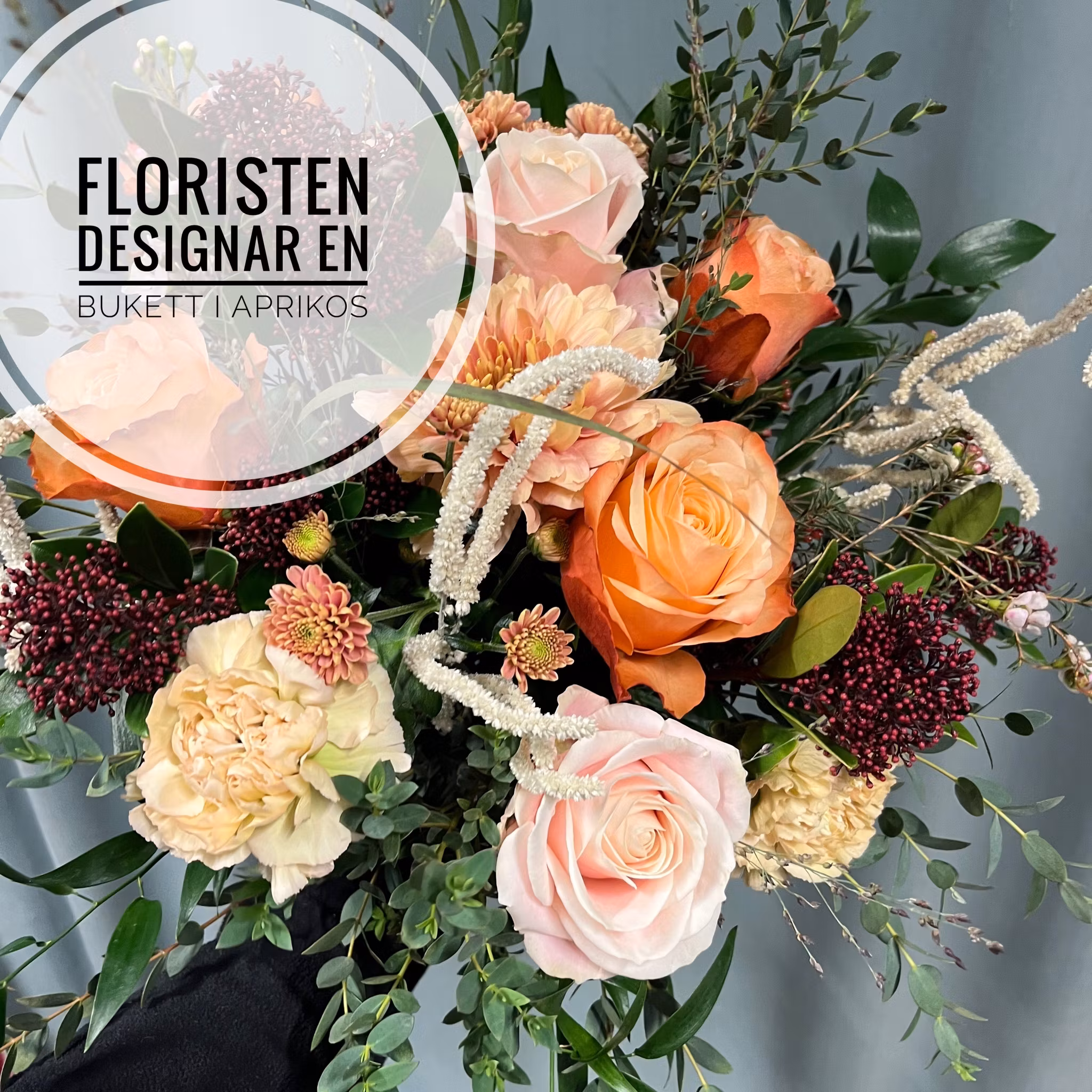 Bukett med focus på aprikos skapad av Våra Expertflorister